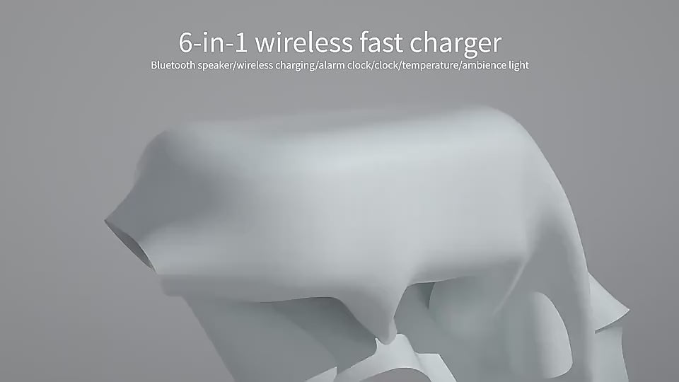 Transforma tu mesita de noche en un centro de tecnología con este altavoz inteligente multifunción 6 en 1. Combina diseño elegante con funcionalidad avanzada: carga inalámbrica, sonido Bluetooth premium, iluminación ambiental RGB y reloj despertador inteligente, todo en un solo dispositivo.